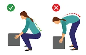 Soulever du poids posé à terre doit se faire en restant dans l’axe du corps (pas de torsion sur le côté)et en pliant ses jambes.